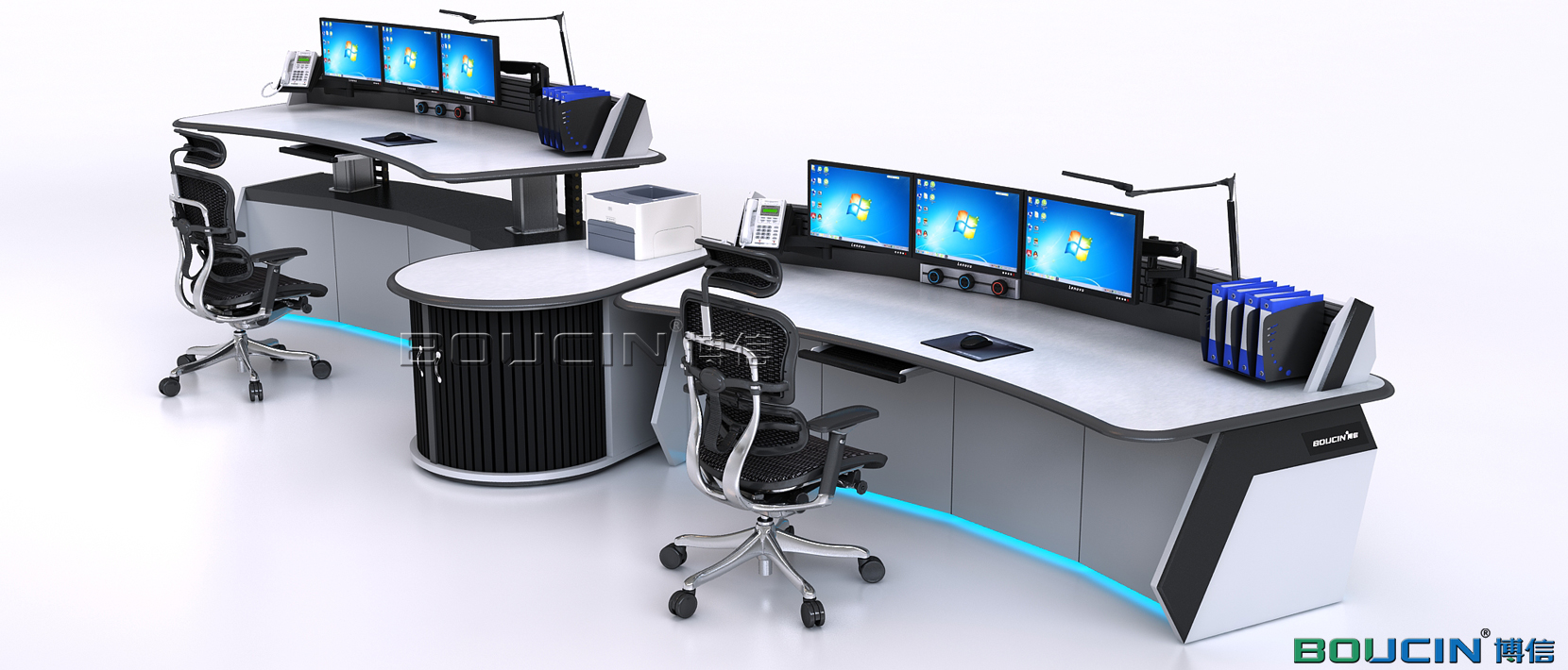 博信控制臺BO SHARK CONSOLE系列產品采用了簡單的坐 站方式來解決控制中心的人性化挑戰:讓工作環境滿足用戶的使用需求。博信控制臺讓終端用戶通過觸控式按鈕來實現對工作環境的完全掌控。